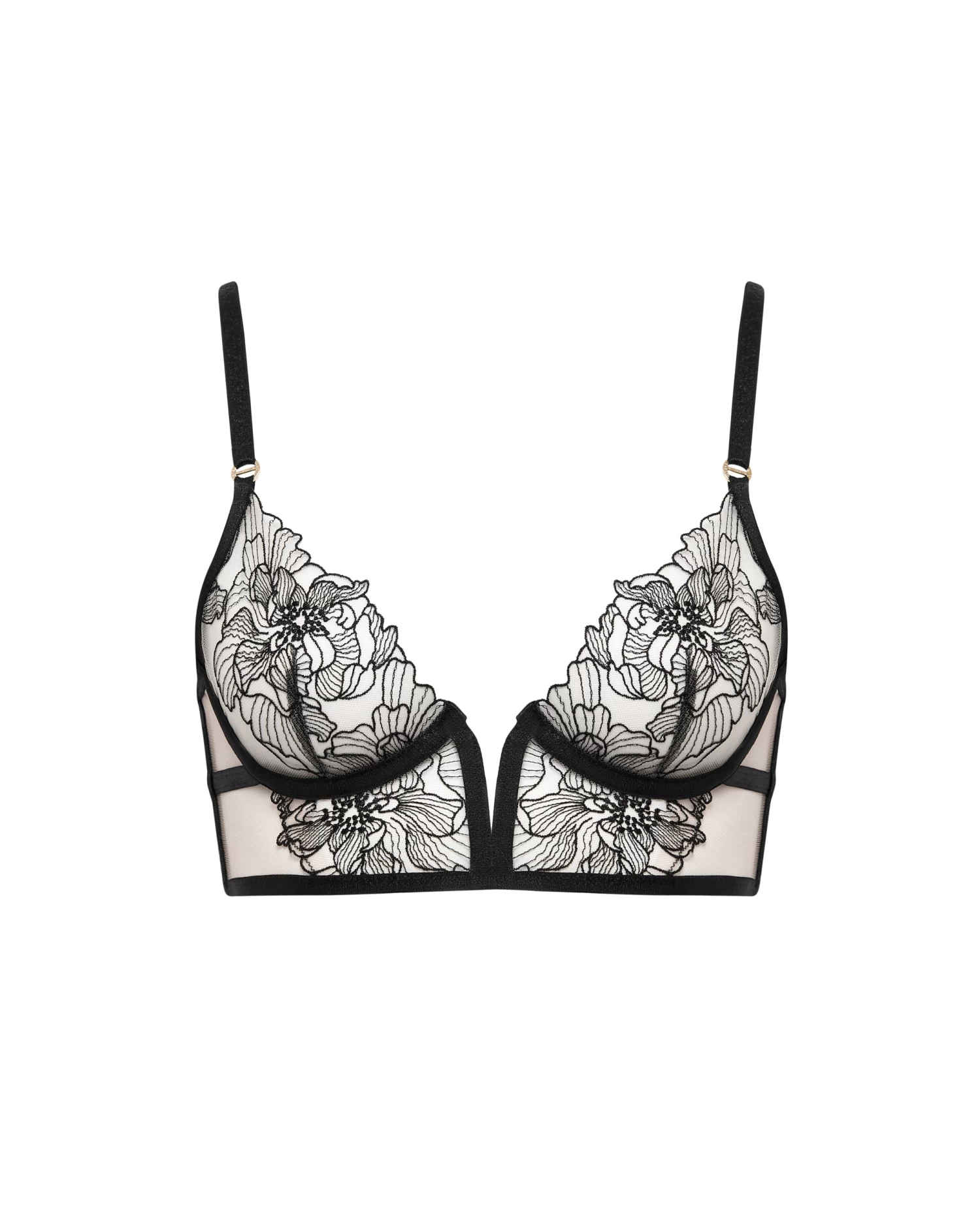 The Althea bra embodies the beauty found in intricate details. Its romance-inspired style is adorned with delicate floral embroidery, adding allure and an air of mystery. Meticulously crafted stitches create a captivating pattern, turning this bra into a mesmerizing work of art. Whether worn under a special outfit or savoured during moments of self-admiration, the Althea bra exudes a feeling of unstoppable confidence.