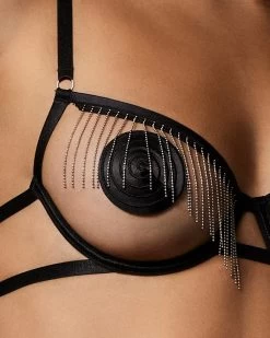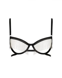 Teasing the eye with its unapologetically provocative design, the seductive Antoinette redefines the meaning of an underwired bra with intricate, silver-tone tassels and hardware. The look delivered but this state-of-the-art design is at once elegant and regal, begging to be styled with the matching Antoinette thong and thigh harness for a finish on a distinctively sensual note.
