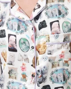 BLUEBELLA BB X Ashley Williams Kitten Print Luxury Satin Shirt