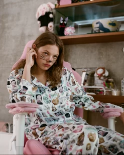 Immerse yourself in a world where modern elegance meets cheeky irreverence as Bluebella and one of Britain’s top contemporary womenswear designers, Ashley Williams, unite creative forces to unveil a capsule collection that’s too cool not to show off. Reimagining a classic nightwear staple, this sleek shirt features Williams’ signature kitten print that perfectly balances vintage sensibilities with kitschy vibes. Style with the matching trousers and eye mask for nightwear perfection.
