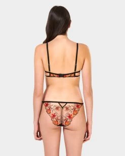 Add a touch of colourful elegance to your lingerie edit with the utterly feminine Calista brief. Working with gorgeous shades orange and red, this stunning piece displays intricate floral embroidery to the front and back, accentuated with touches of Bluebella’s signature gold-tone hardware. Style with the matching Calista bra for a look that defines timeless chic.Â