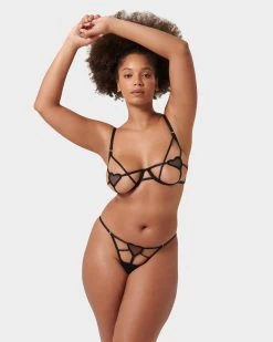 Teasing the eye with its semi-sheer mesh and bold cut-outs, the Cristabel thong is a secret weapon of provocation in your lingerie repertoire. Spotlighting a playful heart accent to the front and reverse, this minimal number is defined by its directional straps that flatter your figure. Style this sultry piece with the Cristabel bra for a complete look that exudes confidence from every angle.Ê