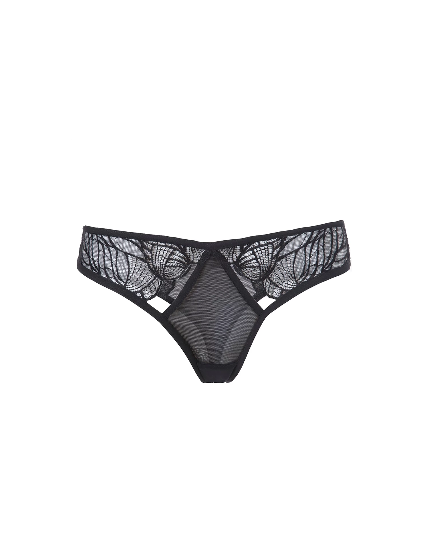 Sexy lace and mesh thong that styles beautifully with the Emerson bra. Lace panels on the front and back of the thong add to the luxurious styling of this seductive range.