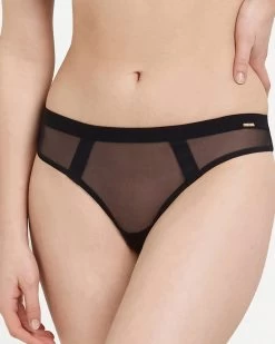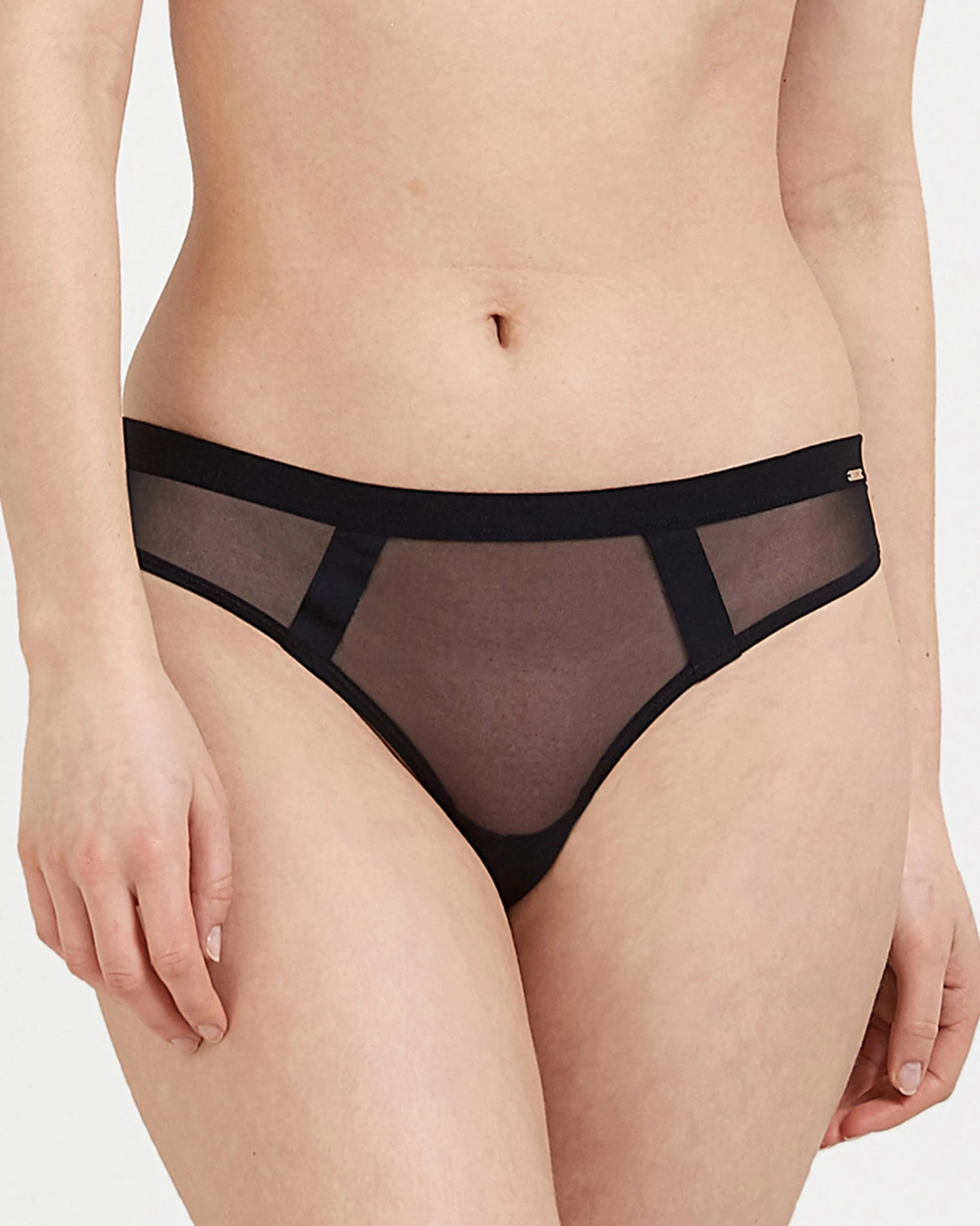 Mesh thong with wide elastic strap detail.