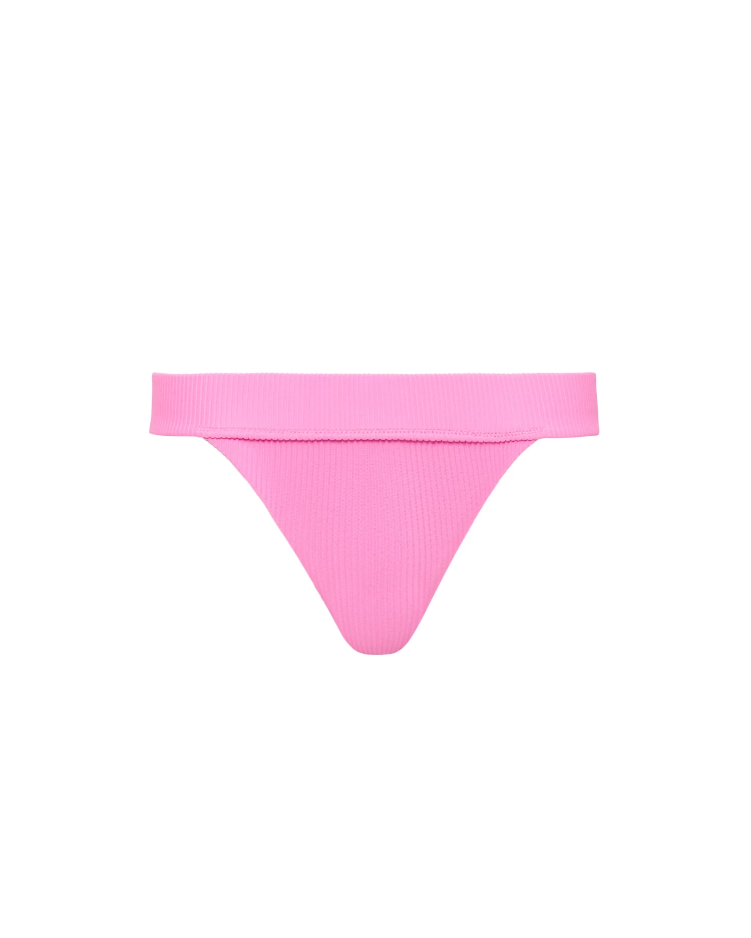 Turn heads at the beach or pool in these pink Lucerne bikini bottoms. Designed with an elasticated wide panel side that can be adjusted to wear on the hips or waist, to suit your silhouette as you please. This piece is crafted from textured ribbed fabric and can be worn with the Lucerne bikini top as a set and styled into a daytime ensemble.