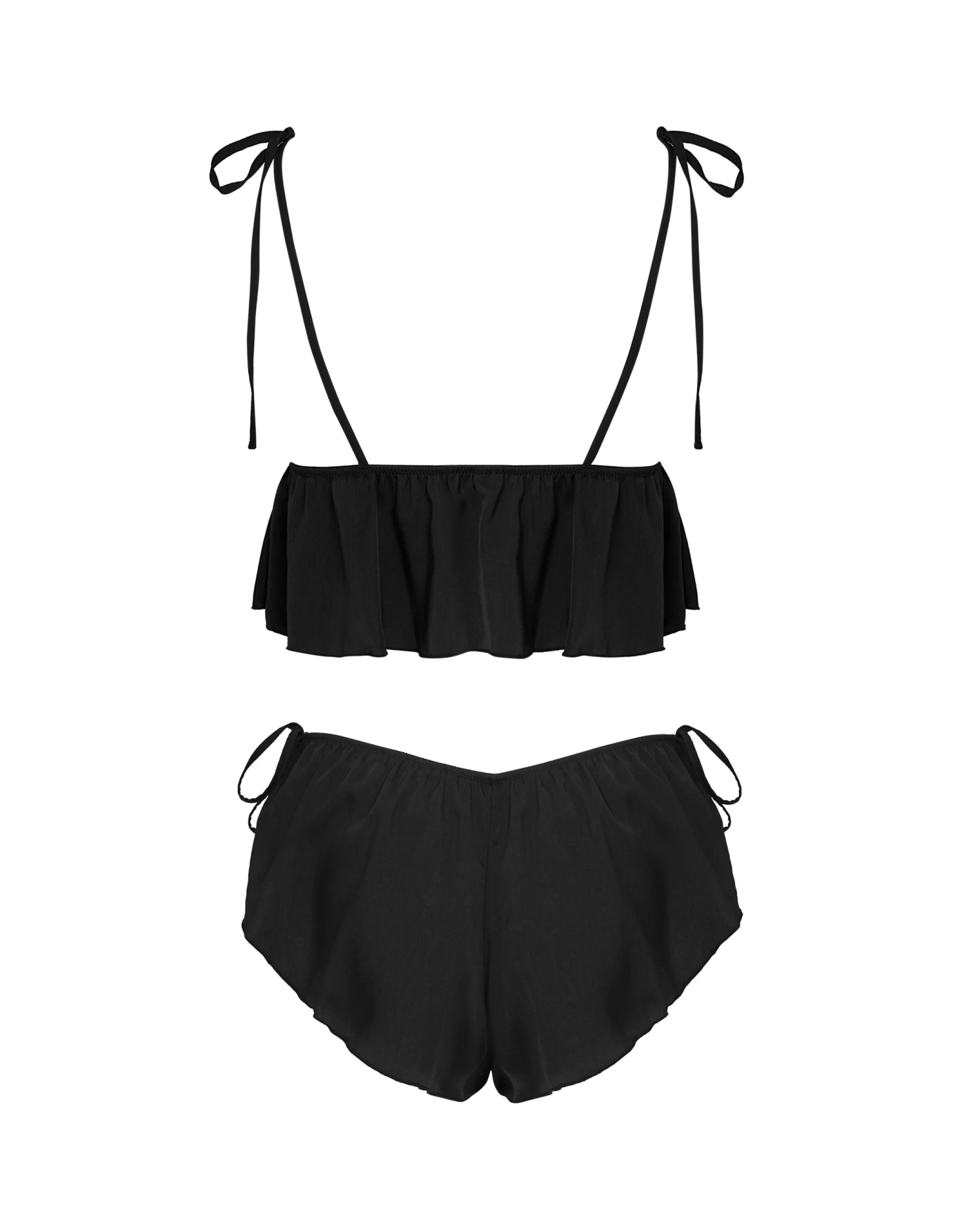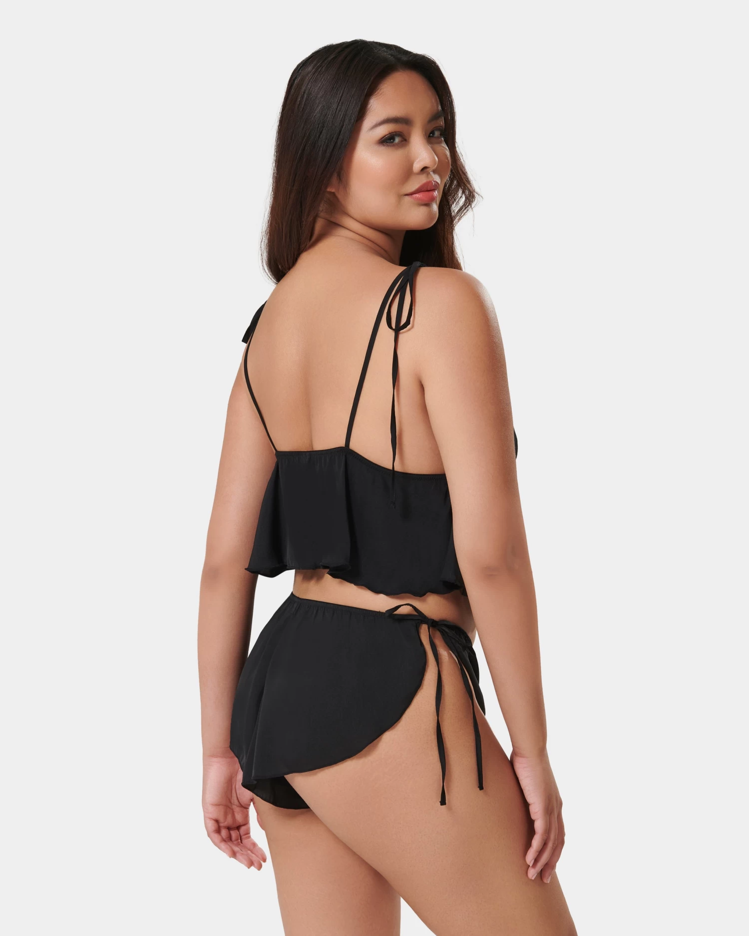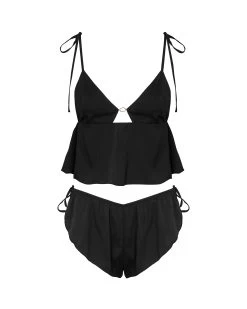 Bring a luxurious mood to your loungewear edit with the ethereal Nicole cami and short set. This delicate, semi-sheer duo features playful tie details to both the top and shorts, lending a distinctively flirtatious note to those moments of relaxation. Slip it over your favourite lingerie or wear solo to fully unleash its provocative undertones.