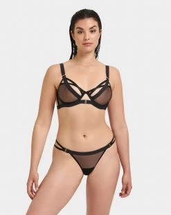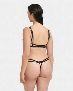 The Oslo thong is a chic and contemporary piece, ideal for adding a touch of luxe to your every day. Its directional straps immediately catch the eye, while the branded details and gold-tone hardware make it a must-have for Bluebella fans. Presented in timeless black, this striking piece is perfect for styling with the matching pieces from the Oslo collection.