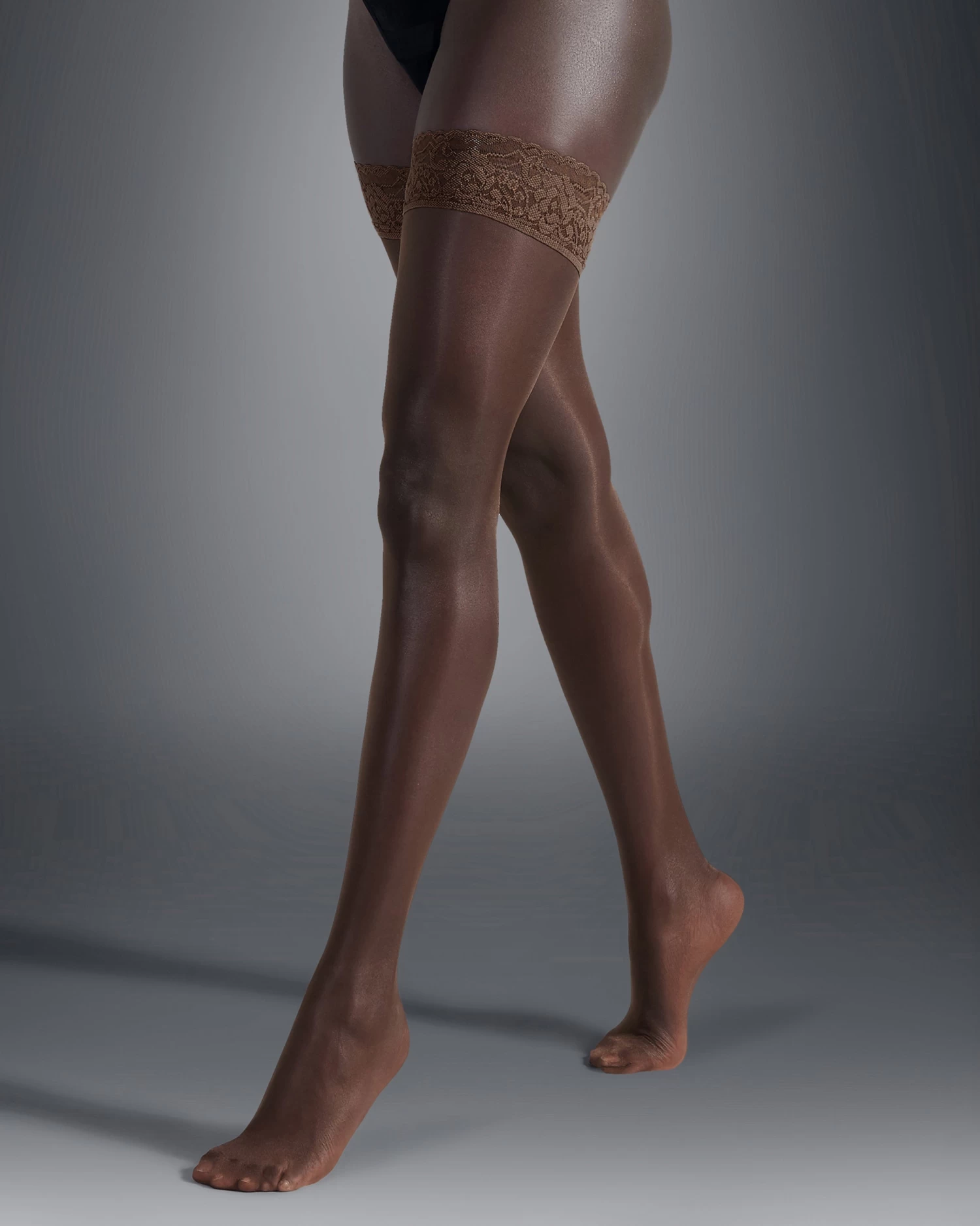 Deep lace tops bring an opulent feel to these seductively soft hold ups. Smooth yarns caress the skin, whilst the silicone top comfortably secures the hold ups in place. Designed for a flawless leg finish, these hold ups are manufactured in Italy for a premium finish and feel. Skin tone powered by Nubian Skin.