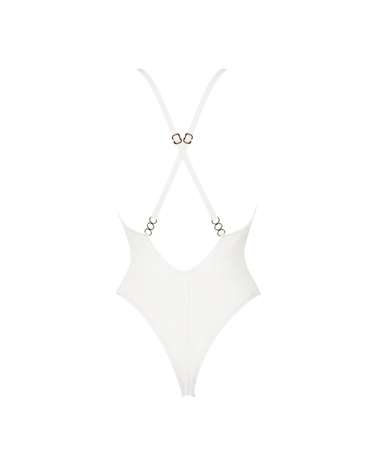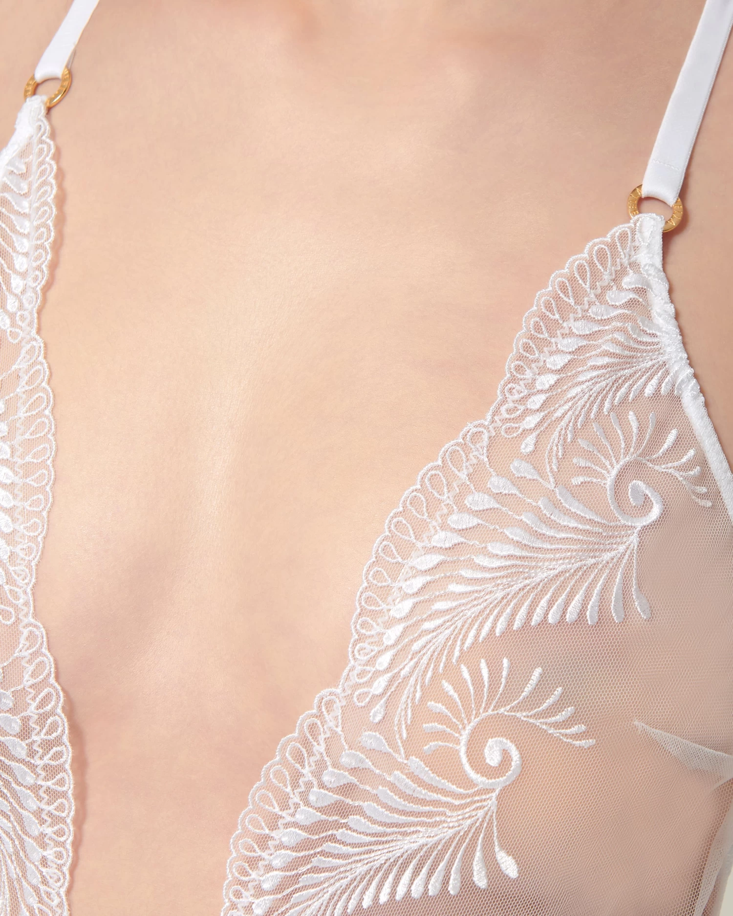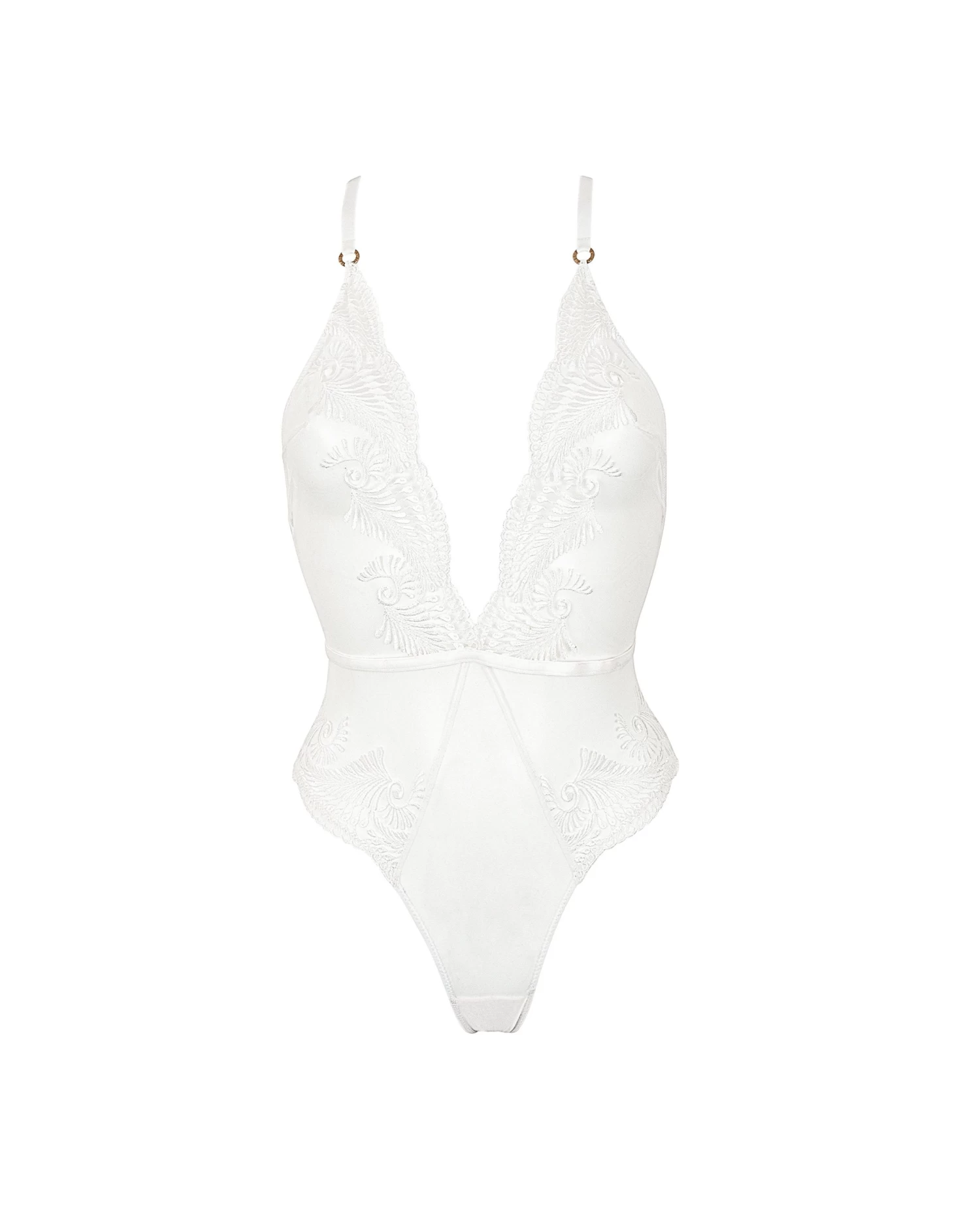 Elegance and art meet in the soft and chic Rafaela body. Lingerie lovers won’t be able to resist the impact of the unique, swirling embroidery and the delicate, semi-sheer mesh creating a perfectly provocative finish. Complete with gold-tone hardware and sleek criss-cross straps to the reverse, the Rafaela is a romantic option that guarantees to set pulses racing.