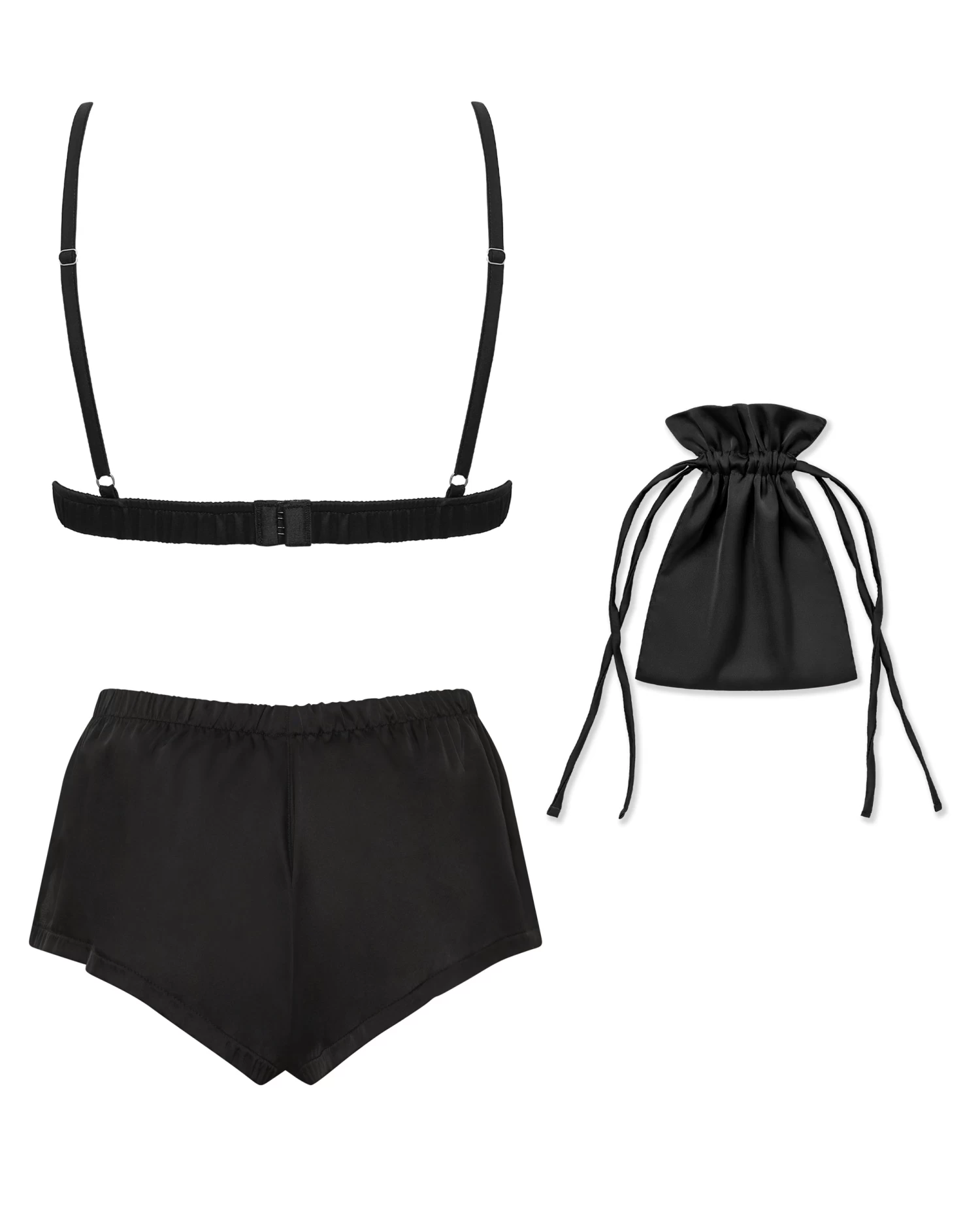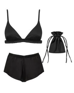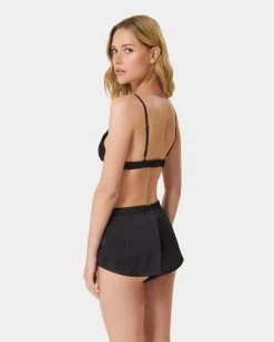BLUEBELLA Saskia Luxury Satin Soft Bra And Short Set Black
