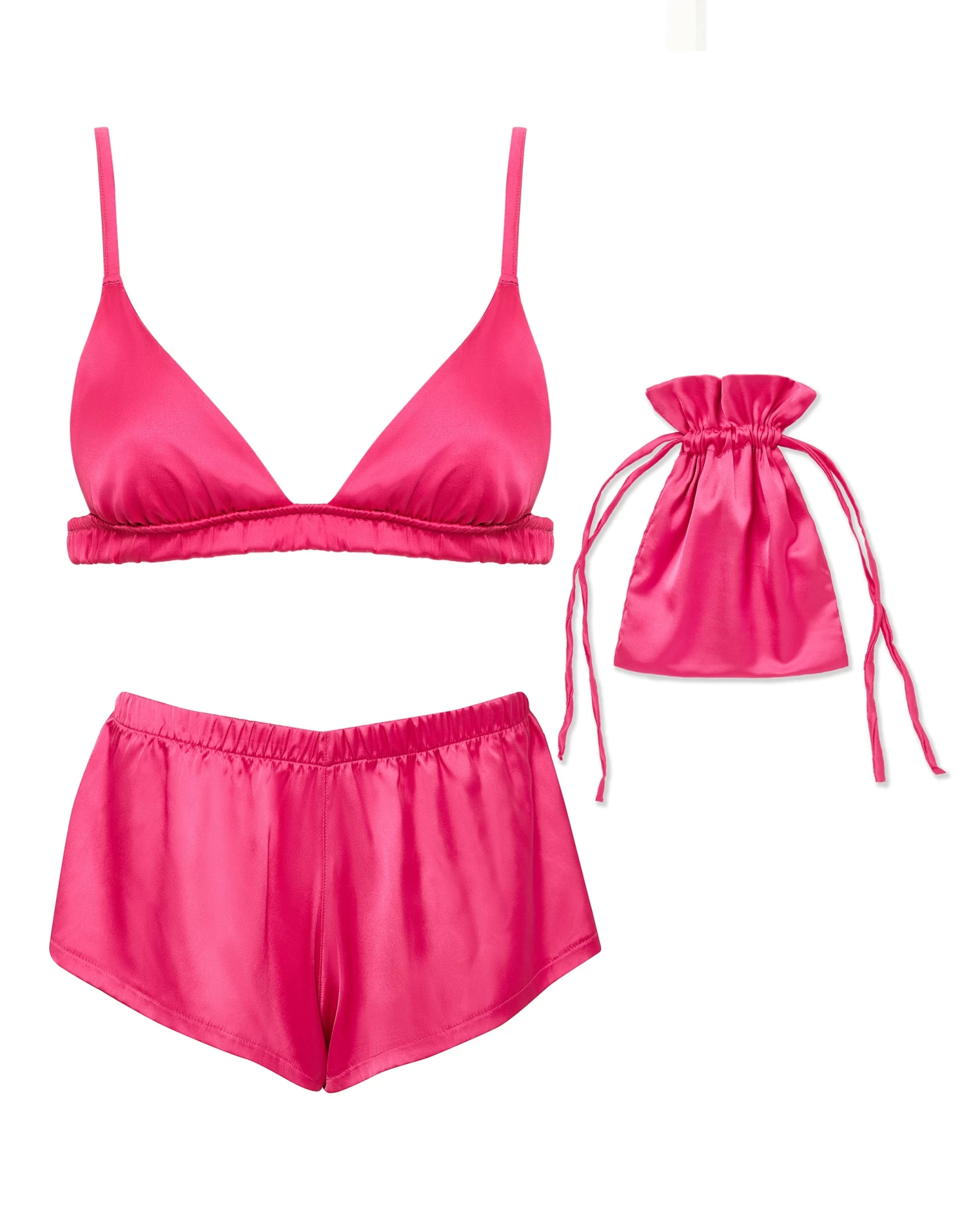 BLUEBELLA Saskia Luxury Satin Soft Bra And Short Set Fuchsia Pink