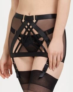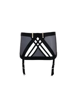 Create a dramatic silhouette with the Sawyer Skirt Suspender. Sheer mesh and directional banding combine to create a chic and contemporary piece, with adjustable suspender straps for the perfect fit. Wear with other items in the Sawyer collection for a modern take on a classic look.