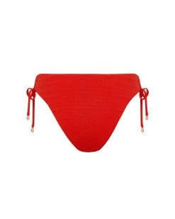 Set the tone for self-love and confidence on your next vacation with the red high-waisted bikini bottoms. The adjustable ruched tie-side fastening allows for multiple styling options and added comfort while the gold-tone embellishments add glamour to this piece. Pair with the matching Shala bikini top, which also has multiple styling options, perfect for your every need.
