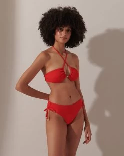 Channel Baywatch vibes with the fiery red multi-way bandeau bikini top. Expertly crafted to boast multiple styling options, this clever piece is enhanced with gold-tone metalwork details to add a touch of glamour. Pair with the matching Shala bikini bottoms, which also have multiple styling options, perfect for your every need.