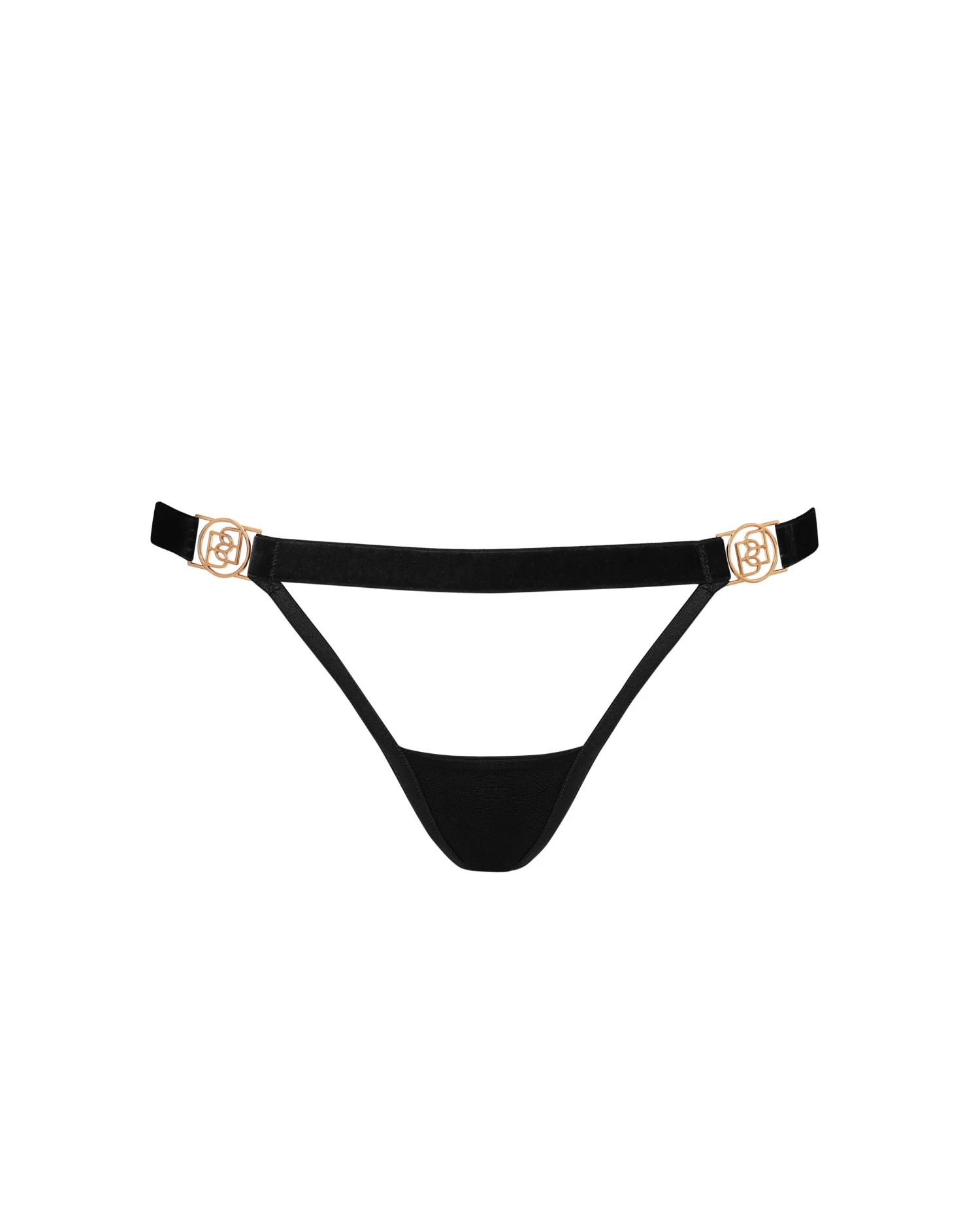 The Thalia open-back brief delivers a fashion-forward mixture of directional straps, bold logos and chunky hardware, showcasing our mastery over lingerie construction. Balanced with a provocatively open back, this impactful piece feels most at home when styled with the matching pieces from the Thalia collection but is also guaranteed to leave a lasting impression when worn solo.