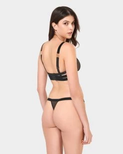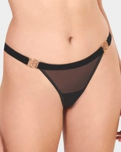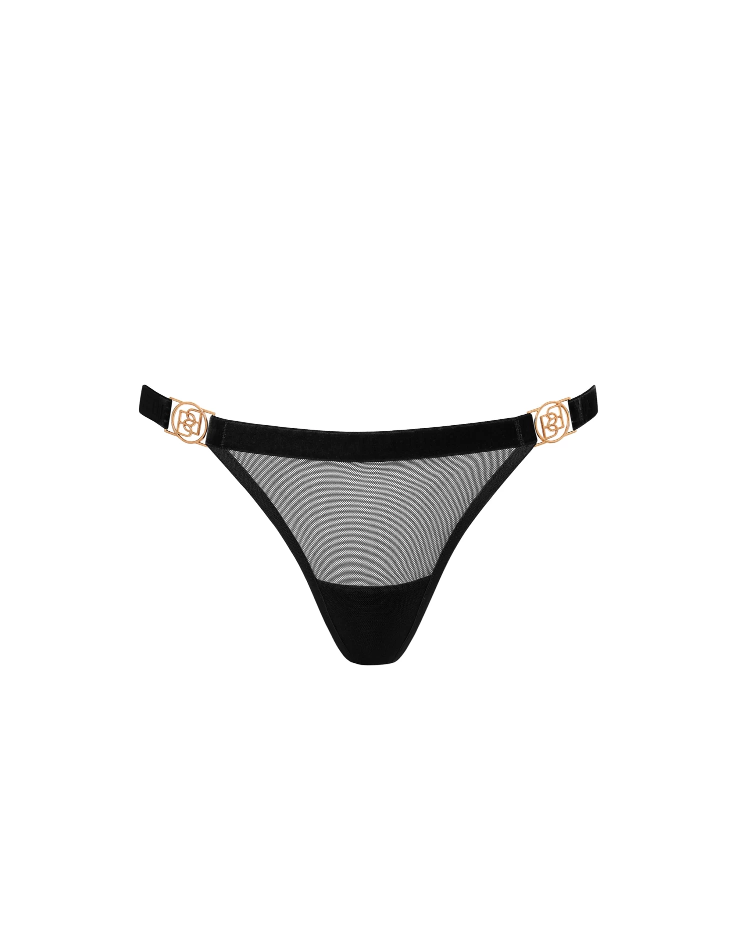 The Thalia thong is a pioneering take on a lingerie staple, blurring the lines between lingerie and art. Constructed with soft mesh, wide straps and chunky hardware to create a provocative silhouette, this bold piece delivers a distinctively daring touch to your collection. Let it complement the matching pieces from the Thalia line to experience a complete look that radiates confidence.