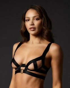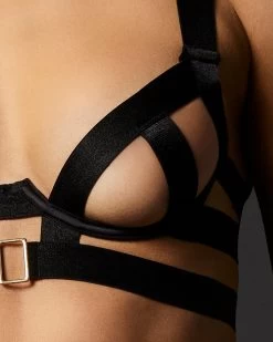 Seeking the embodiment of confidence and style? Your quest ends with the Trinity semi-open bra. Crafted to command attention, this lingerie masterpiece exudes an exquisite statement. A defining feature of the Trinity bra lies in its broad directional straps, not only adding a captivating design flair but also delivering unparalleled support and comfort. Elevate its allure by pairing it flawlessly with the complementary Trinity pieces for a complete ensemble.